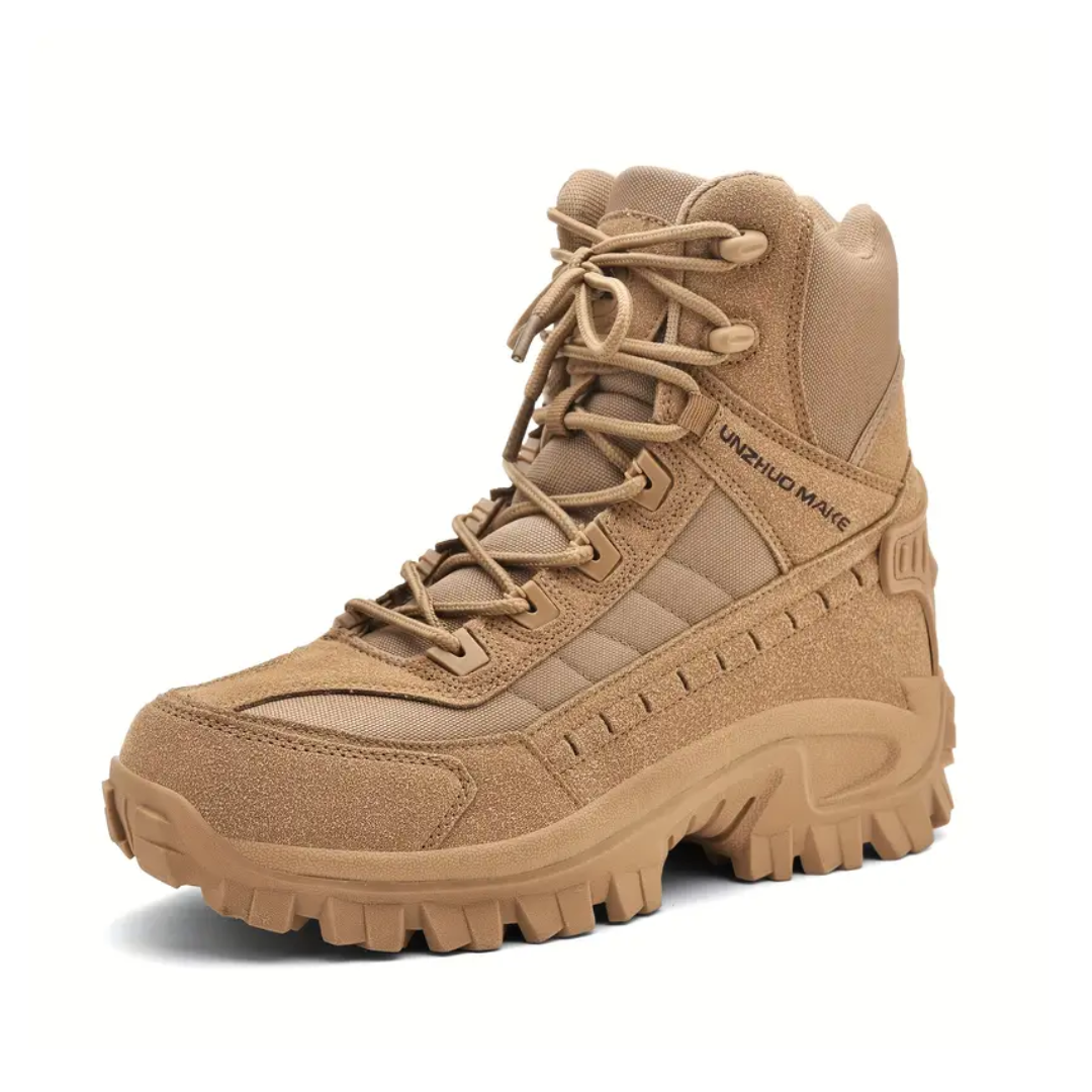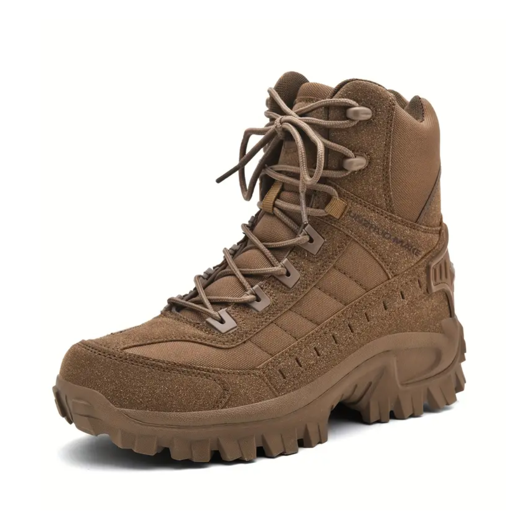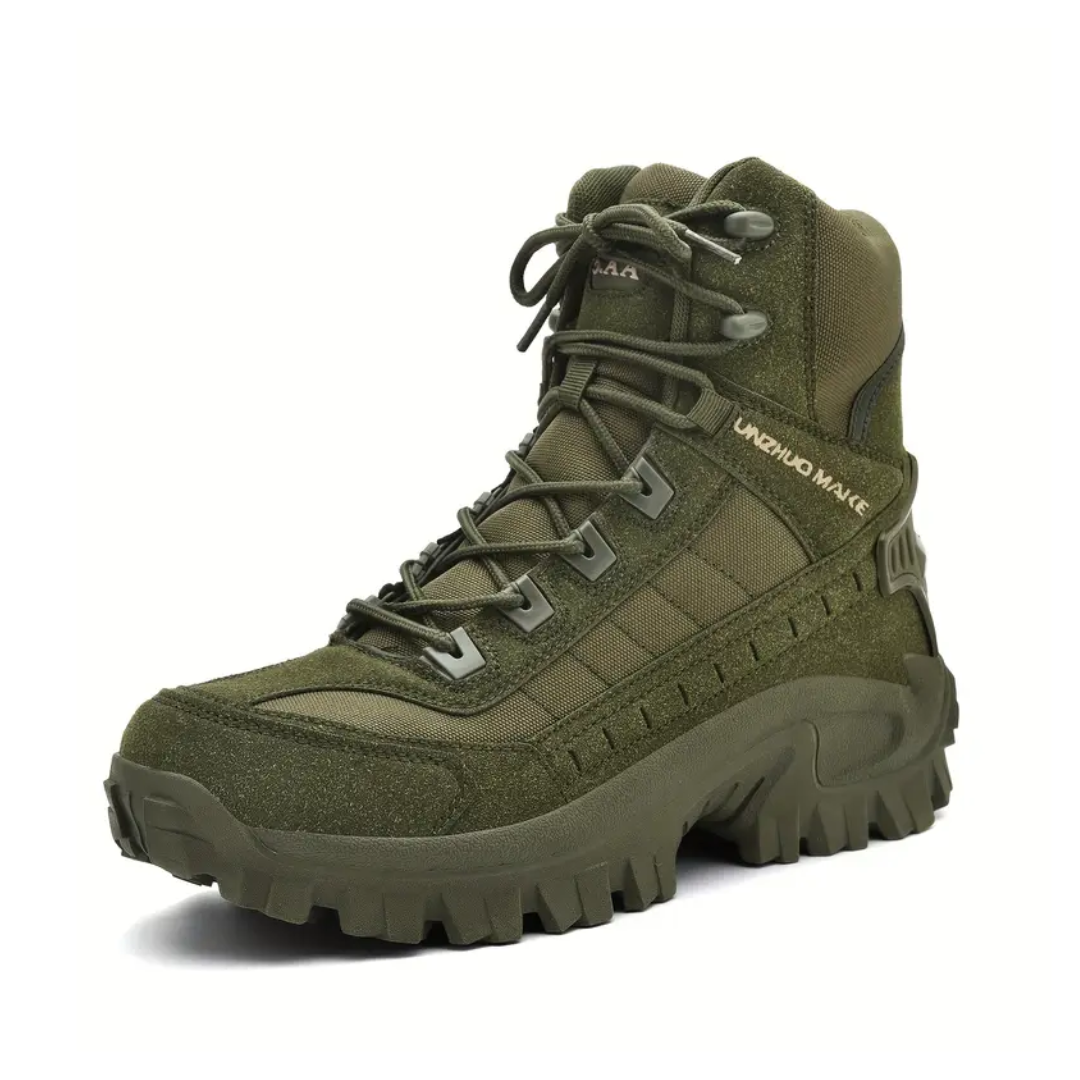 Disse robuste, højskaftede vandrestøvler er skabt til krævende outdooraktiviteter. Med en stødabsorberende sål og anti-slip mønster får du maksimal greb og stabilitet – selv på ujævnt terræn.
