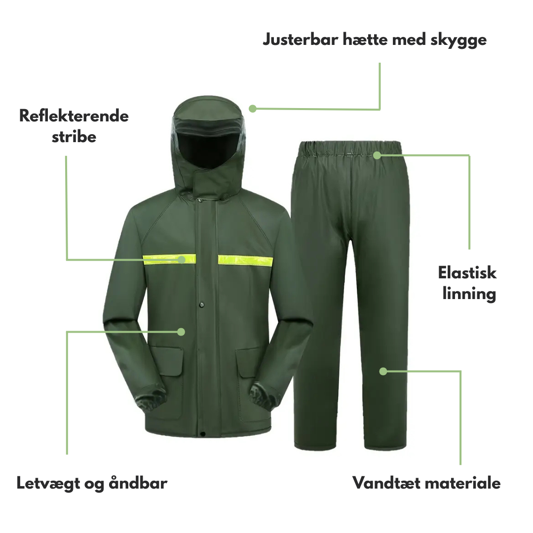 Mød enhver regnbyge med ro i sindet med dette praktiske regnsæt til herrer. Designet til fuld beskyttelse og komfort, fremstillet i slidstærke materialer med pålidelig vandtæthed.