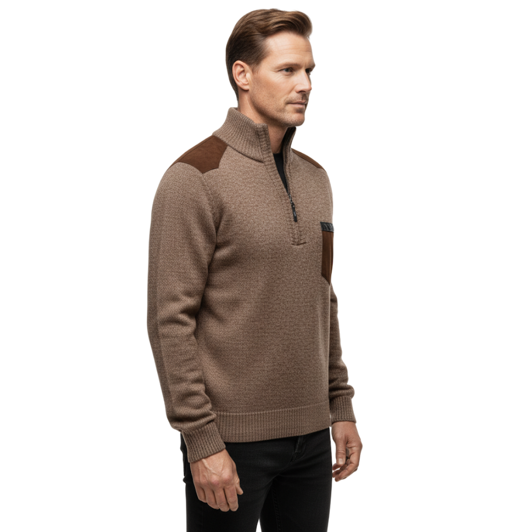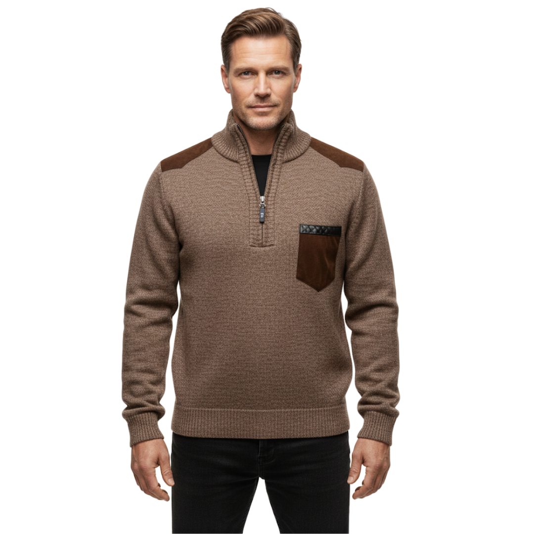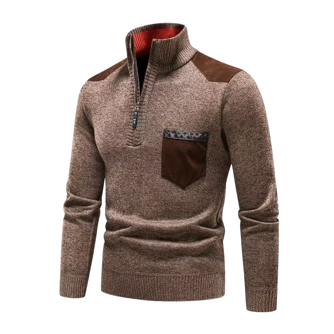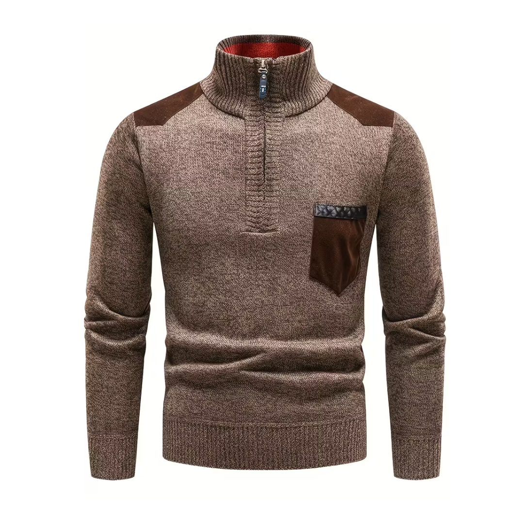 Denne strikkede vintertrøje forener tidløst design med høj komfort. Med fleeceforing, praktisk halv lynlås og en stående krave holder du varmen og bevarer en stilfuld look på kolde dage.