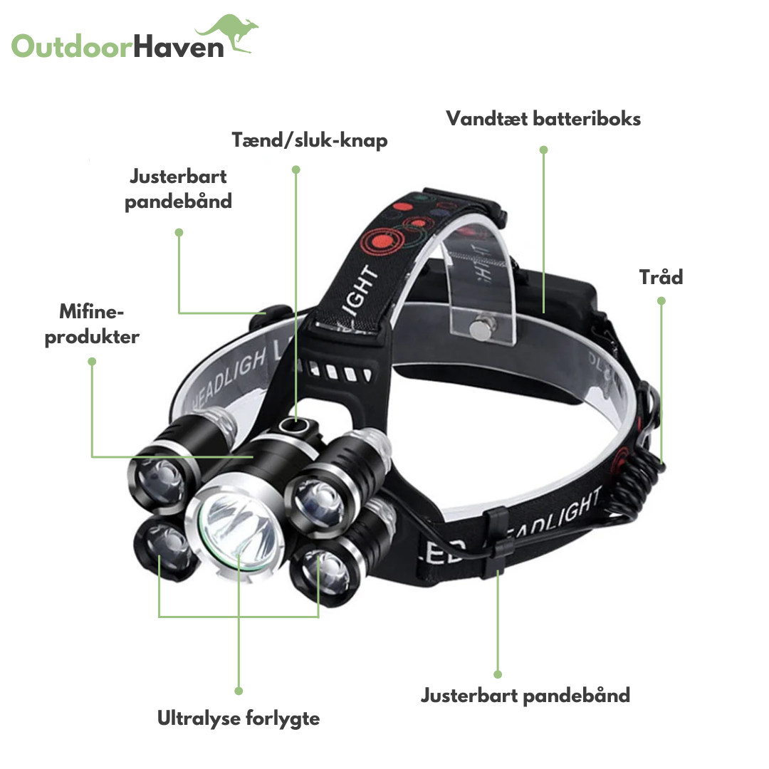 Oplev enestående belysning med denne kraftfulde og holdbare LED-pandelygte. Perfekt til eventyr om natten, arbejde i mørke rum og udendørsaktiviteter.