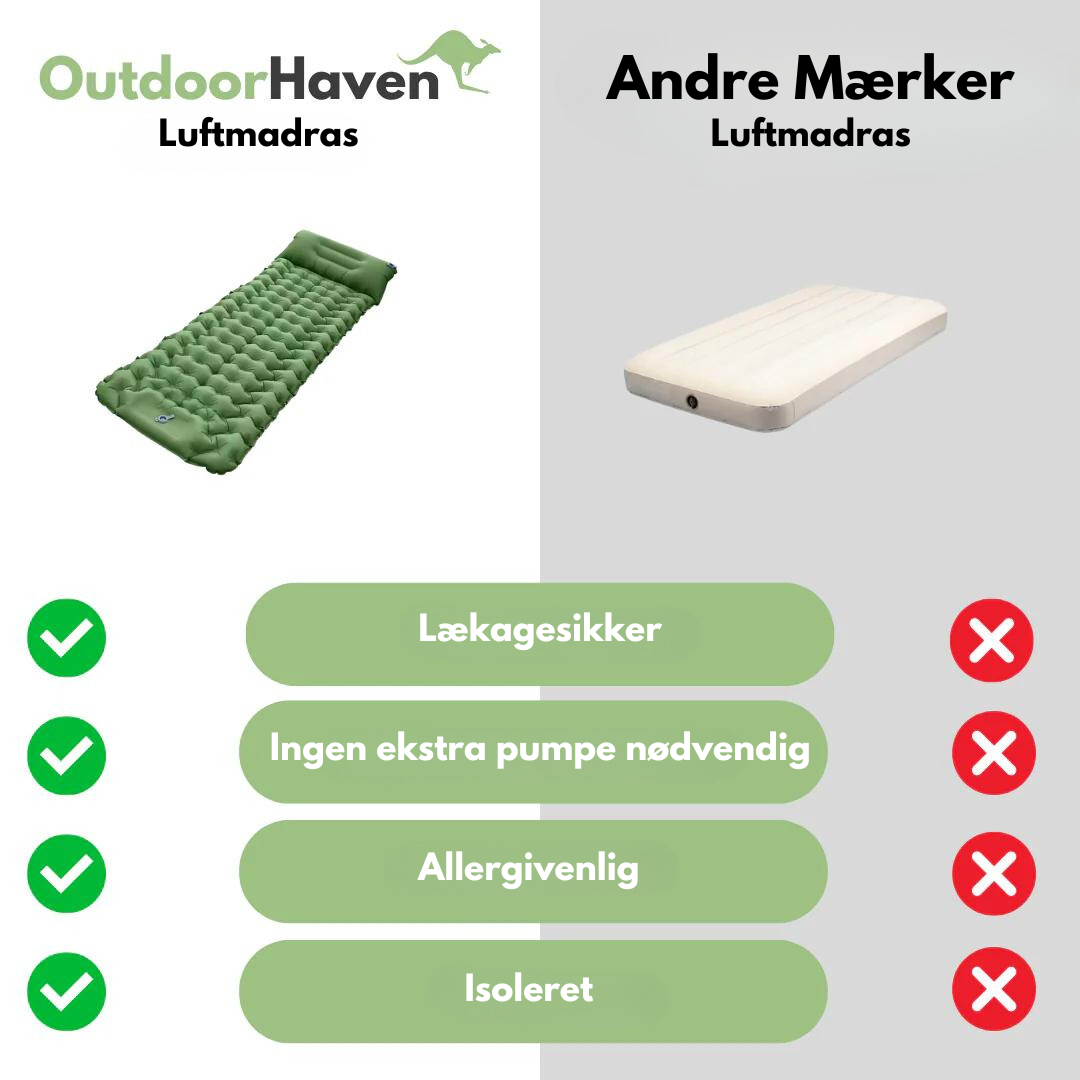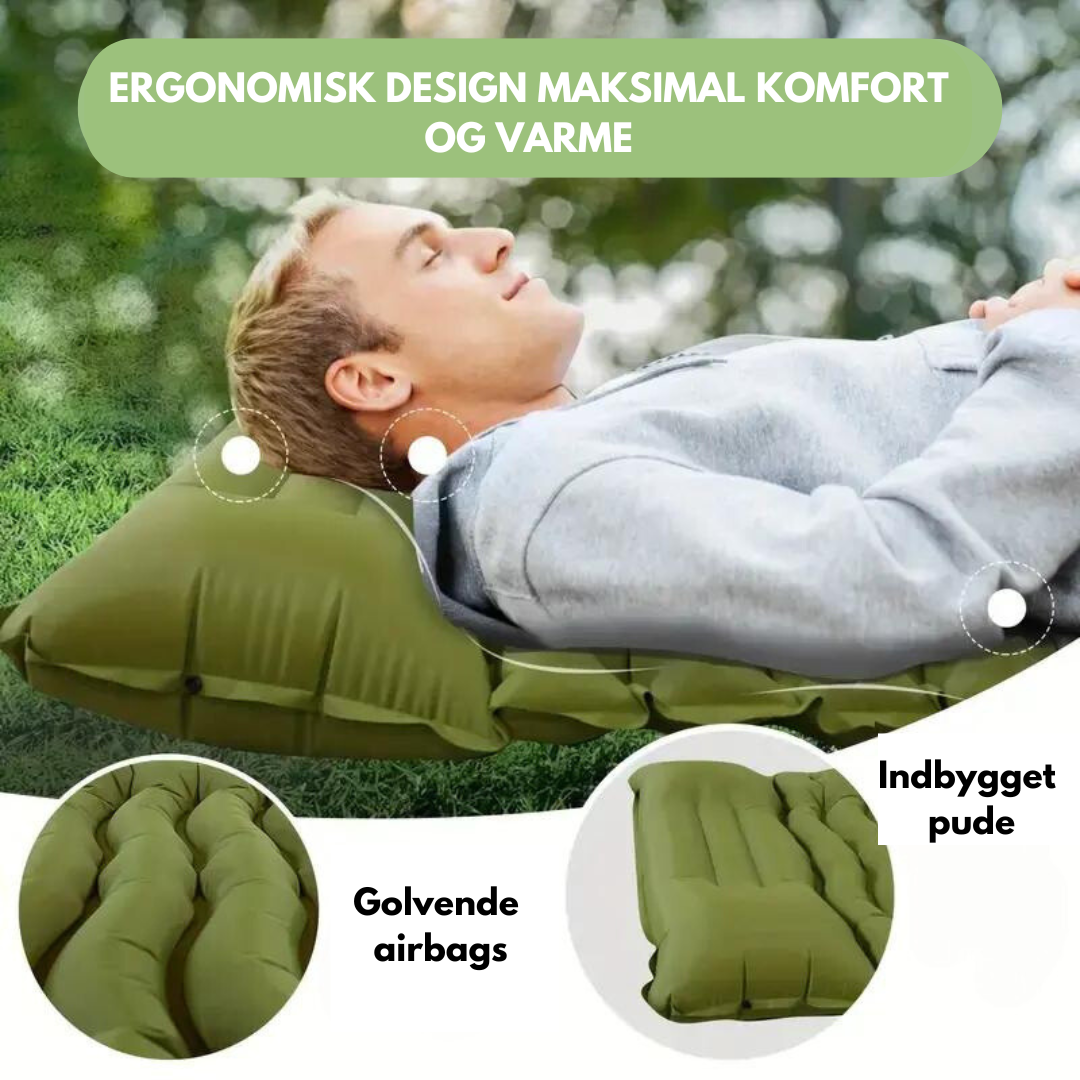 Opdag det ultimative inden for udendørs komfort med OutdoorHaven Luftmadras, en letvægts og kompakt luftmadras specielt designet til at forbedre din campingoplevelse. Sig farvel til urolige nætter og goddag til ultimativ støtte og bekvemmelighed med denne innovative soveløsning.