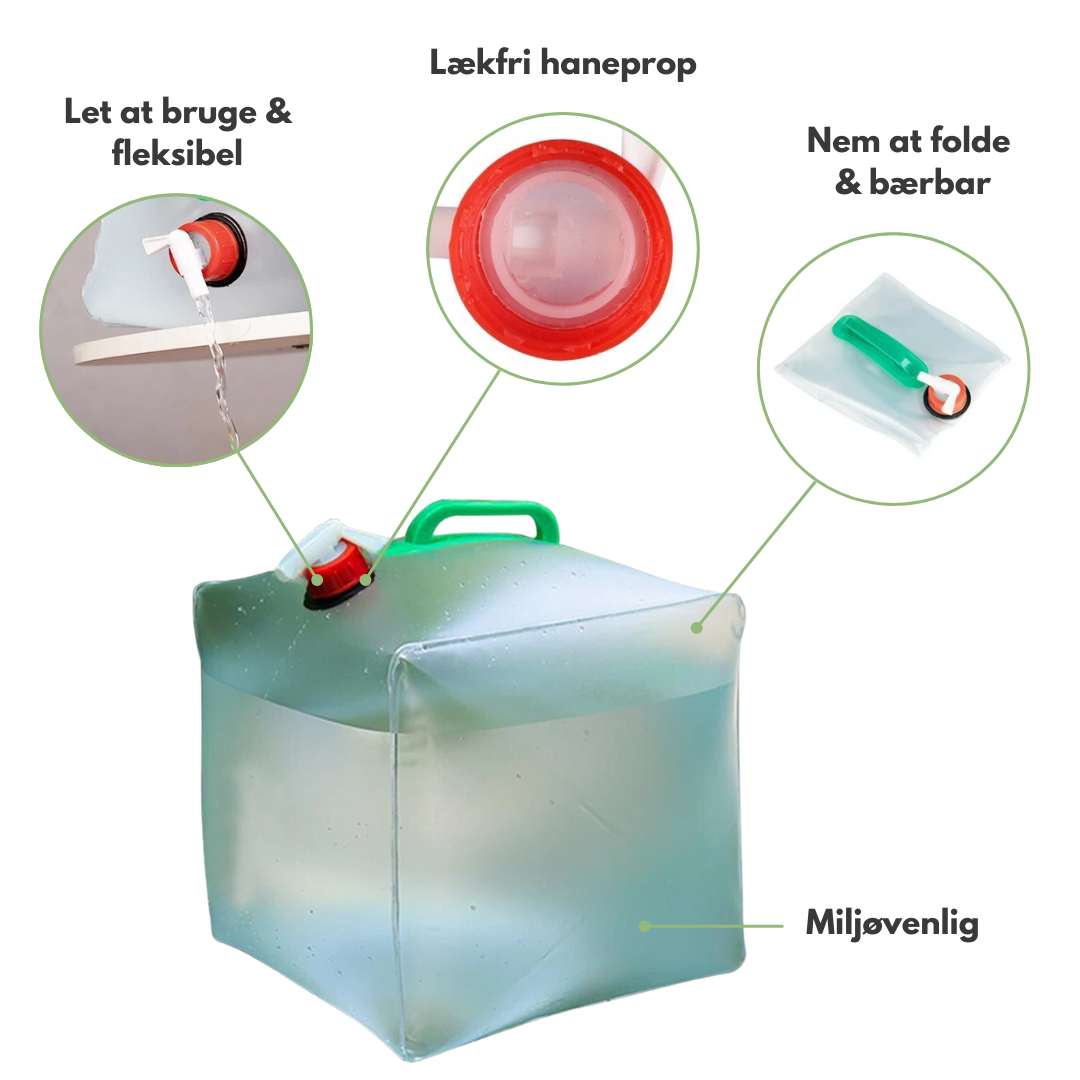 Denne sammenklappelige vandpose på 10 liter er den ideelle løsning til camping, vandreture, nødsituationer og daglig brug udendørs. Med sit letvægts og holdbare design samt en praktisk hane kan du altid nemt opbevare og tappe vand, uanset hvor du befinder dig. Perfekt til outdoor eventyr og nødforsyning.