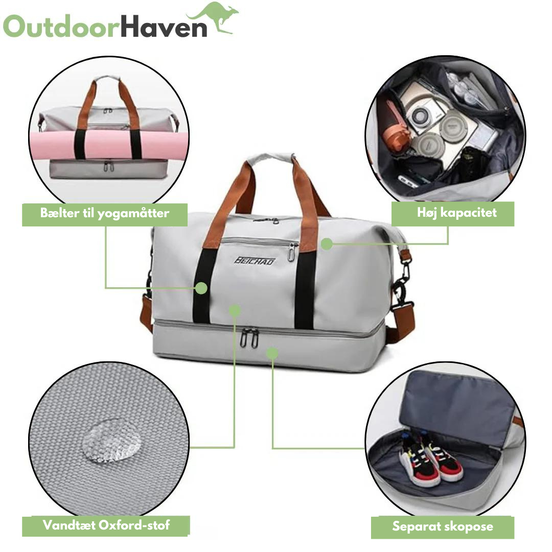 OutdoorHaven Tasken er den ideelle ledsager for sportsentusiaster og rejsende. Med sin rummelige kapacitet og gennemtænkte opdeling tilbyder denne taske den perfekte løsning til alle dine opbevaringsbehov.